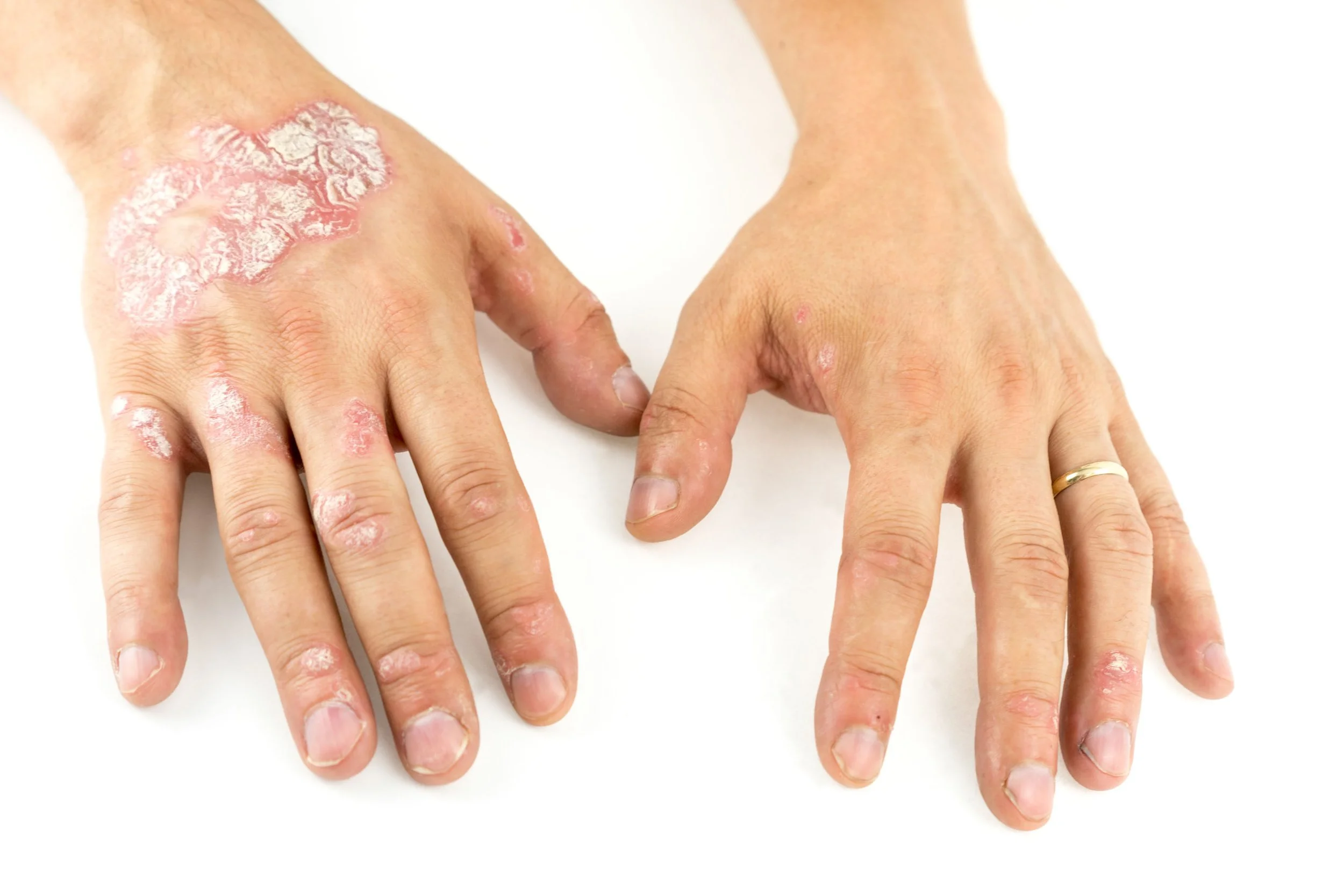 While there’s no cure, psoriasis often improves with sunlight, warm weather, or targeted therapy—and some patients experience years of remission. Triggers may include cold, dry climates, stress, or illness. Psoriasis affects more than 8 million Americans of all ages and backgrounds, typically appearing in young adulthood.